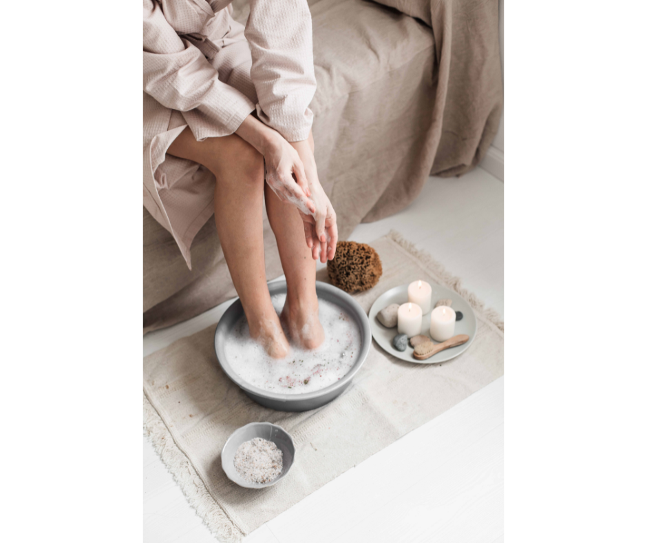 3. Evening foot soaks with Epsom salts.